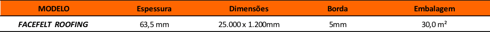 Facefelt – É uma solução desenvolvida para tratar termicamente e acusticamente edificações de pavimento único, sem necessidade de materiais de acabamento interno.