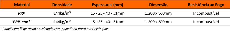 Painéis rígidos em lã de rocha aglomerados com resinas especiais.
