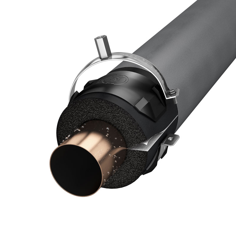 Indicado para o apoio técnico de tubulações em sistemas de refrigeração, ar-condicionado e aquecimento isolados com espuma elastomérica. Sua utilização previne o esmagamento do isolamento térmico nos pontos de suporte, evitando a perda de espessura, pontes térmicas e comprometimento da estanqueidade do sistema, garantindo desempenho contínuo e durabilidade da instalação.