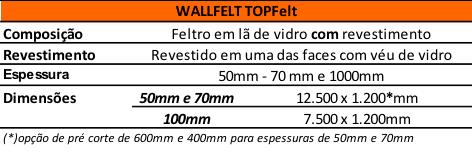 Desenvolvido para compor o Sistema Drywall, o Wallfelt é composto de lã de vidro aglomeradas por resinas sintéticas e deve ser utilizado entre placas de gesso acartonado preenchendo as divisórias de drywall. Sua função é isolar os ruídos entre os ambientes internos e entre unidades residenciais (casas e apartamentos), sendo essencial para proporcionar isolação térmica e acústica no sistema drywall.