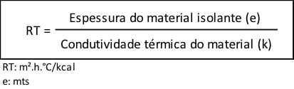 A resistência térmica é uma grandeza obtida em função da espessura do material e o índice de condutividade térmica do mesmo, e seu cálculo é dado pela fórmula abaixo: