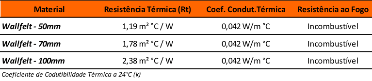 O Wallfelt proporciona ótimos soluções em isolação térmica graças aos seus baixos coeficientes de condutividade térmica e, consequentemente, altos índices de Resistência Térmica.