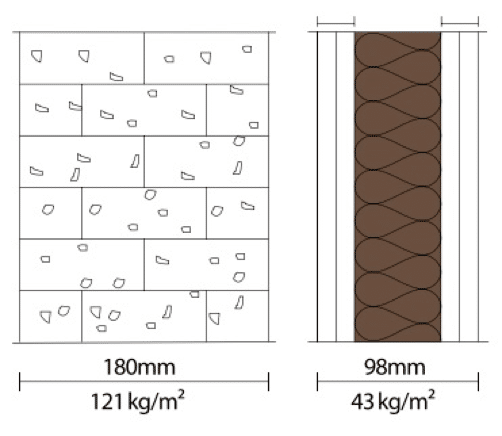 Entretanto, a utilização de paredes extremamente pesadas são economicamente inviáveis, além de ocuparem área útil das habitações.