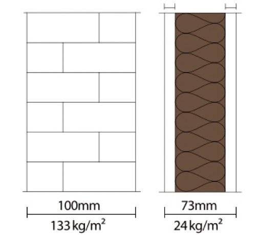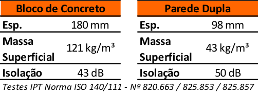 Como os ruídos se propagam através das paredes por meio de vibração, quanto maior for a massa superficial desta parede, maior será a isolação sonora proporcionada.